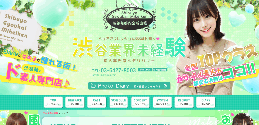 ワンランク上の素人専門店「渋谷業界未経験」。店舗名のとおり業界未経験の女の子のみを採用しており、プロの風俗嬢やAV女優は一切在籍していません。